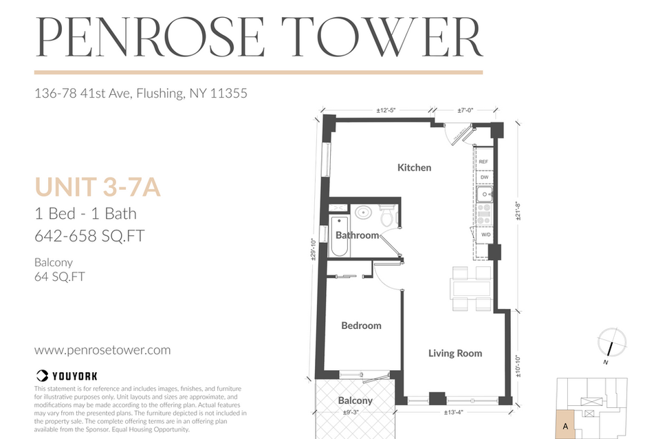 Penrose Tower is a modern 8-story mixed-use building located on Main Street in Flushing. The building is just a 3-minute walk from the Subway Line 7 and LIRR train stations, with an additional 7 bus routes within a 2-minute walking radius. It features a total of 44 condominium residential units and 6 ground-floor commercial spaces, suitable for both investment and owner-occupation, complete with an underground parking facility. Unit layouts include studios, 1B1B, and 2B2B condos, perfectly resonating with the lifestyle of urban families.